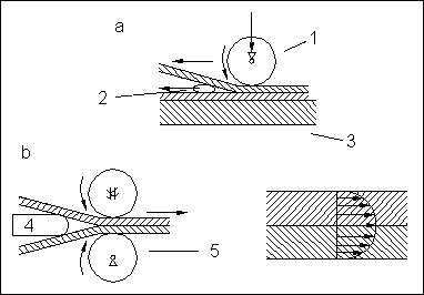 1-wałek dociskowy, 2-klin grzejny (dociskowy), 3-podkładka, 4-klin grzejny stały, 5-wałek dociskowy i transportowy