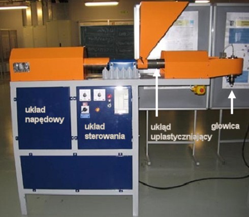 Jednoślimakowa wytłaczarka laboratoryjna pracująca w Laboratorium Tworzyw Sztucznych PWr.