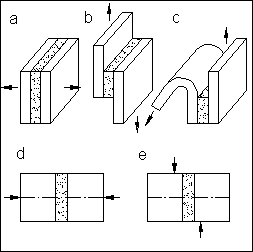 a) na odrywanie, b) na ścinanie, c) na oddzieranie, d) na ściskanie, e) na ścinanie ze zginaniem
